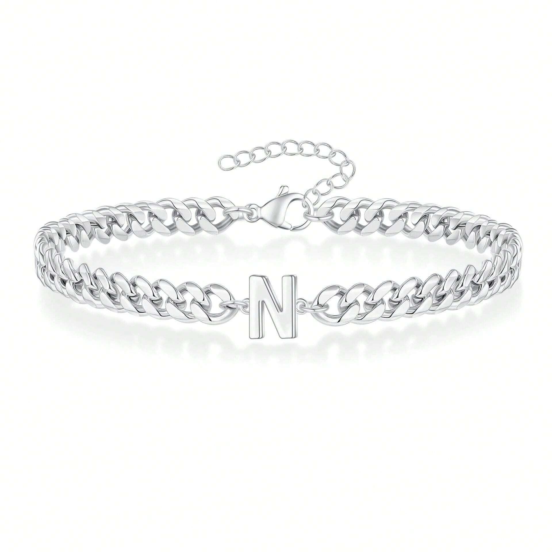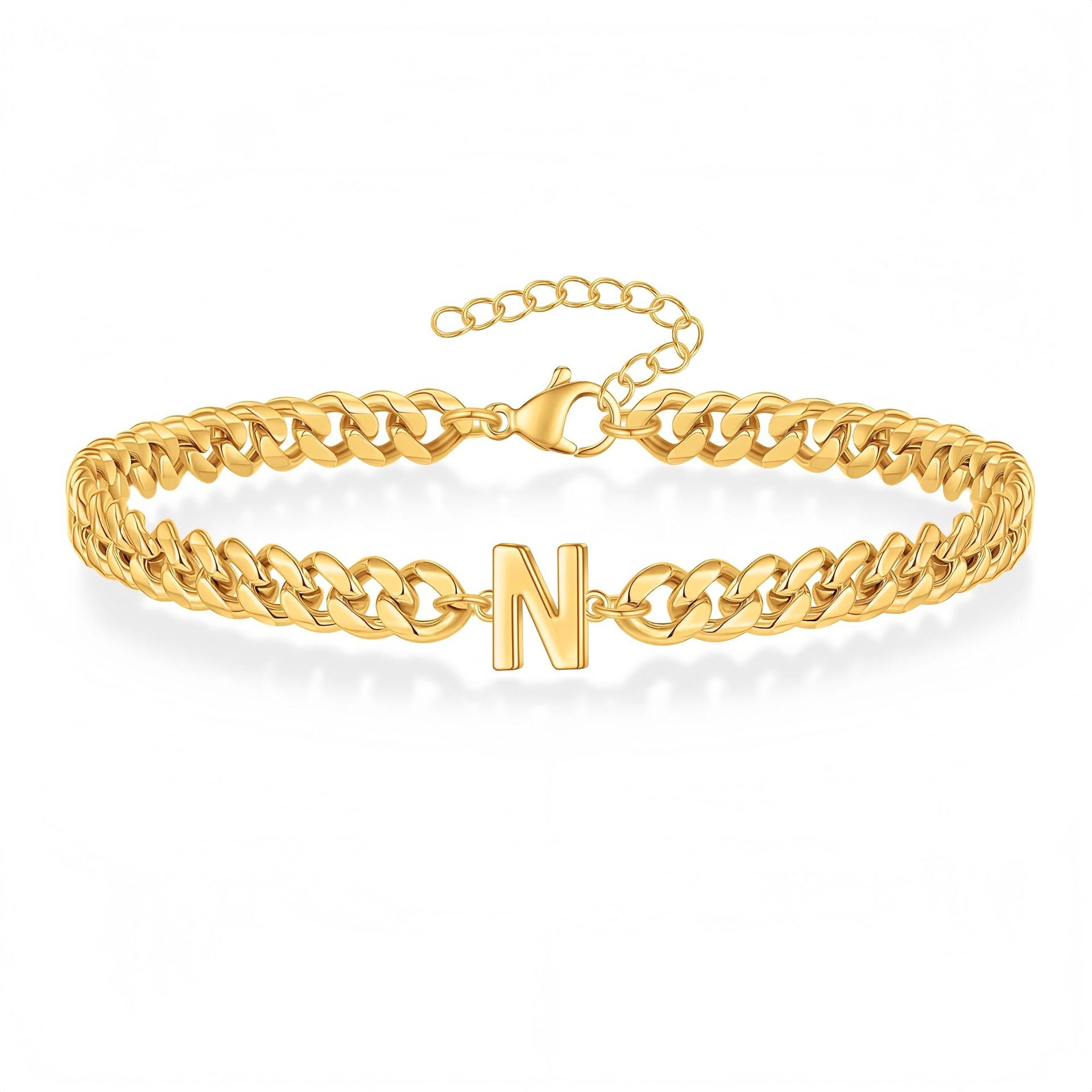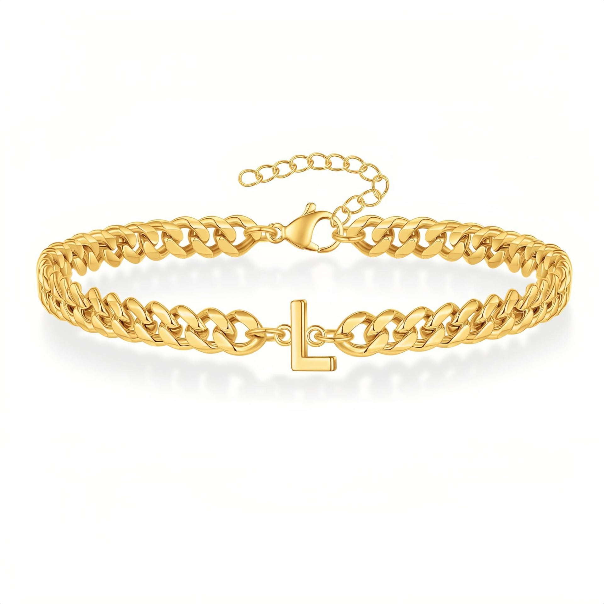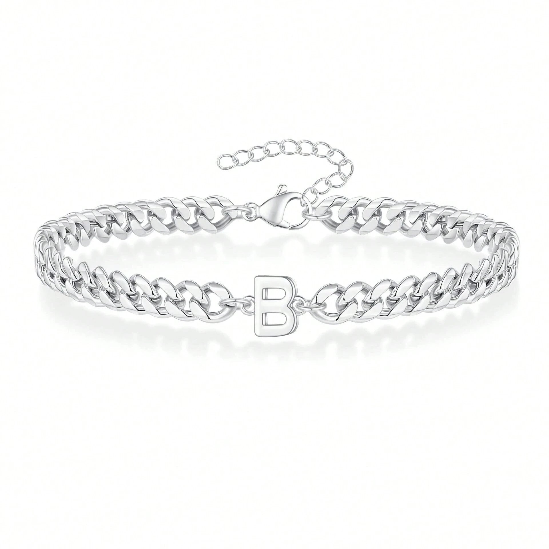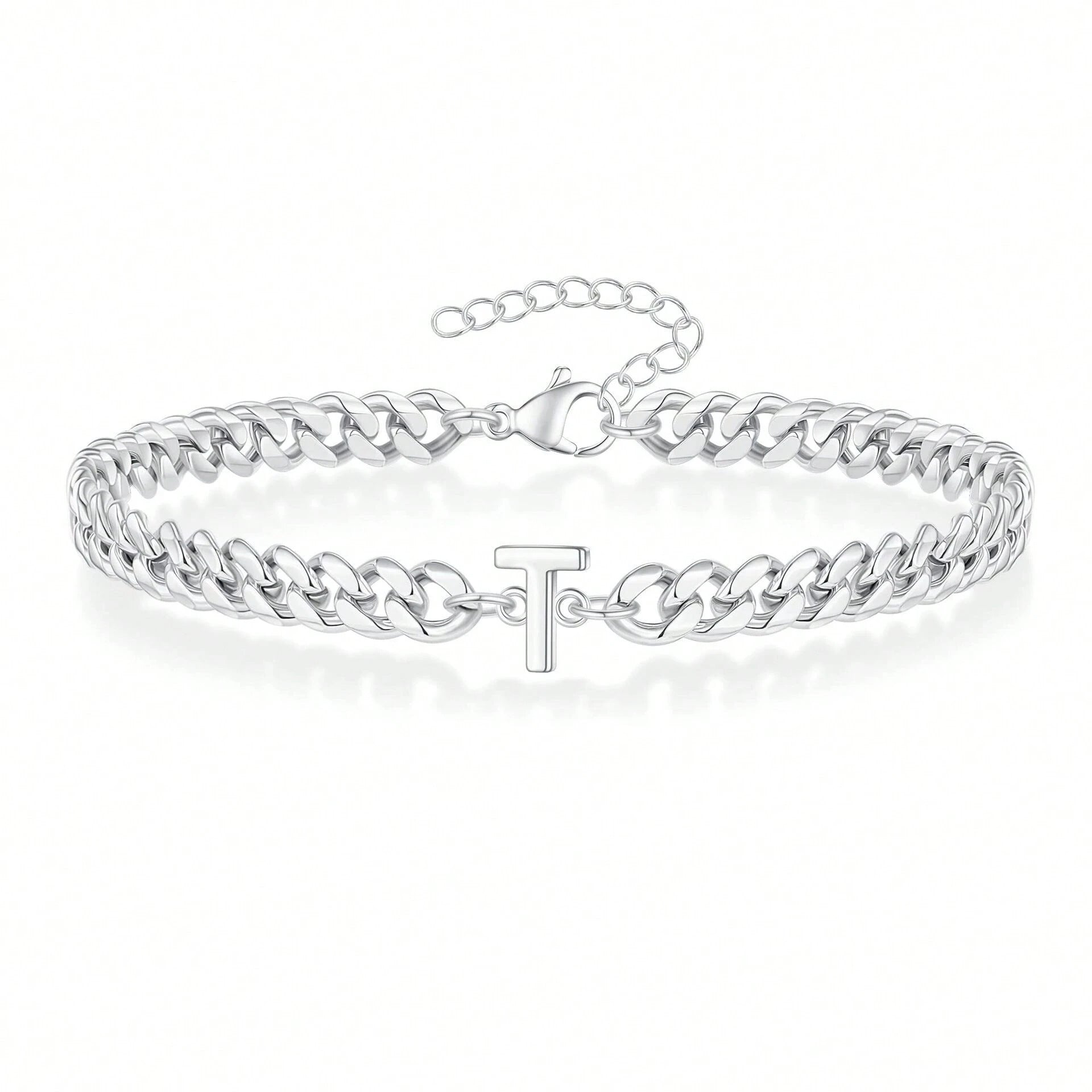 Een gedurfde curb chain armband met een strak initial in het midden. De gepolijste goud/zilveren afwerking creëert een statementstuk dat zowel elegant als persoonlijk is.