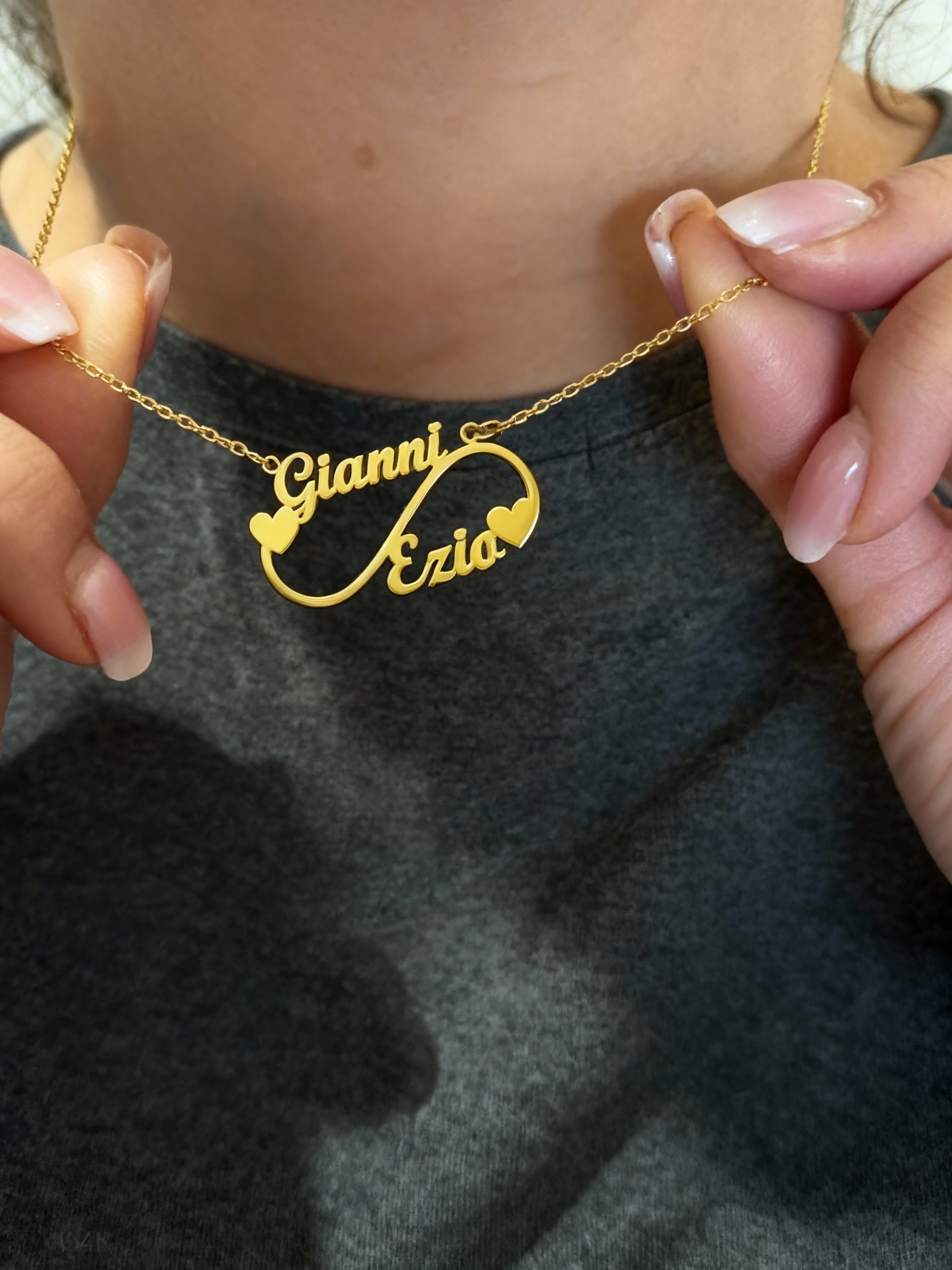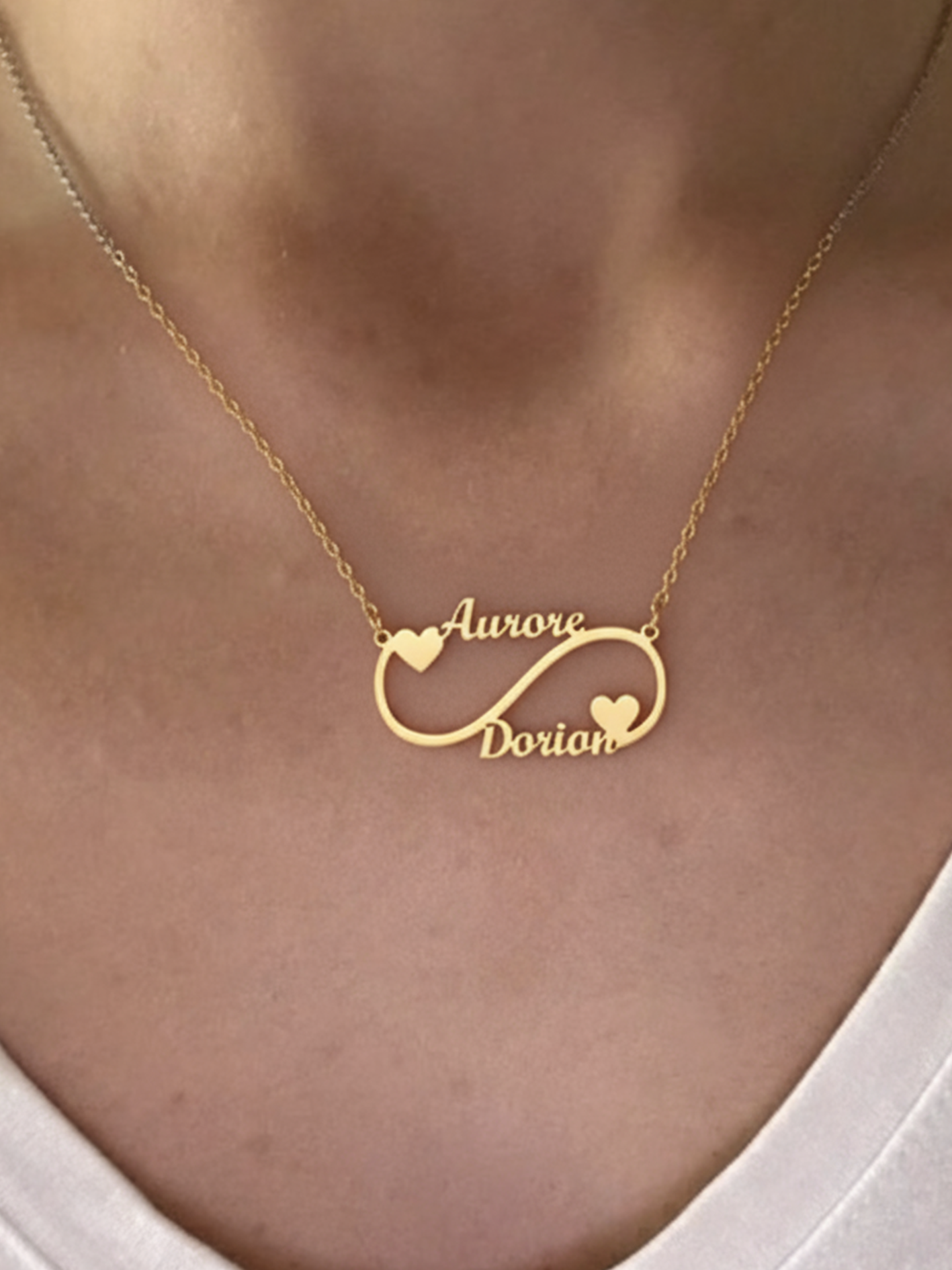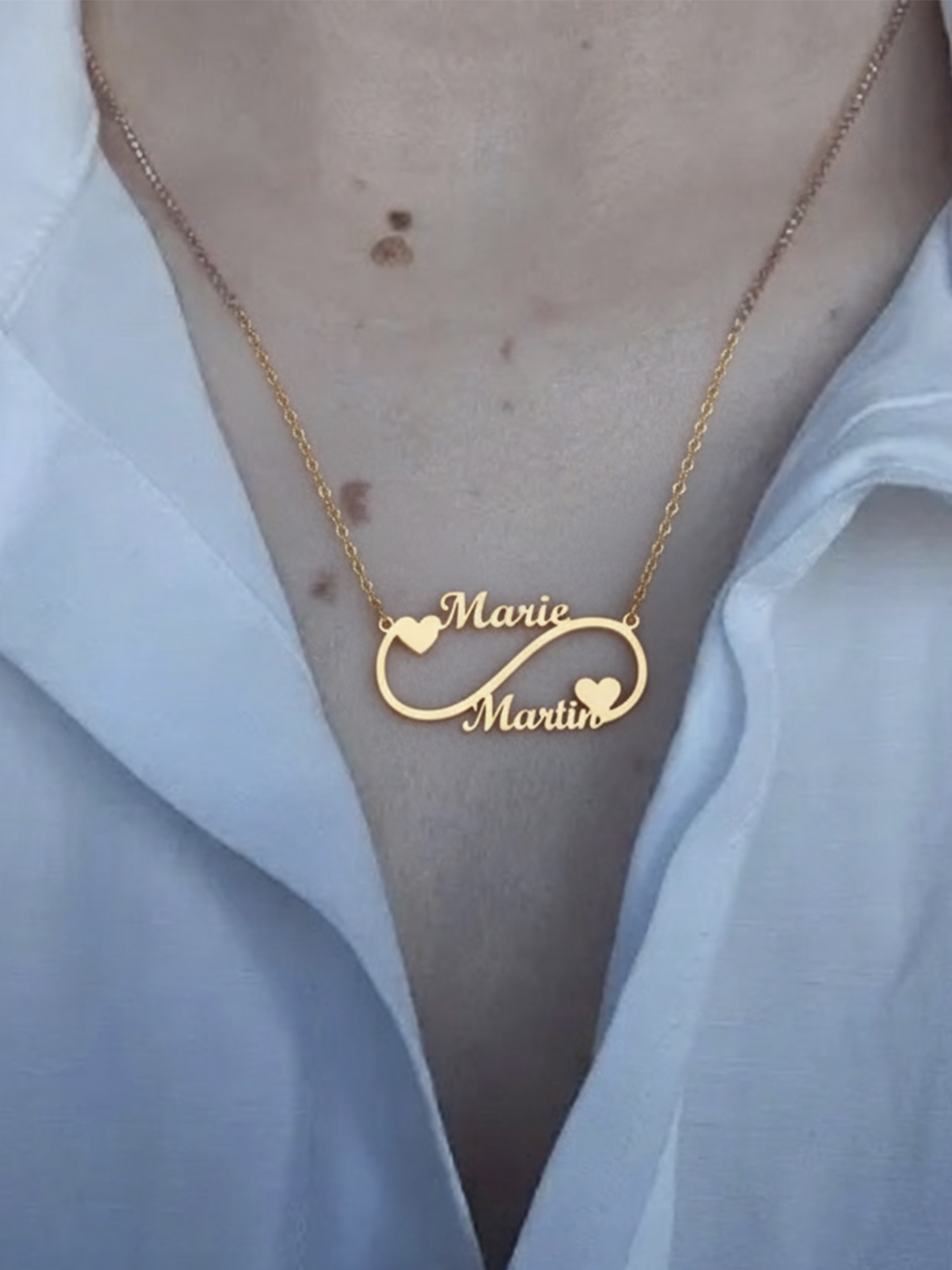 Het geven van een gepersonaliseerde infinity ketting is veel meer dan een cadeau: het is een symbool van eeuwige liefde. Stel je hun gezicht voor dat oplicht wanneer ze twee namen ontdekken die voor altijd met elkaar verweven zijn binnen het infinity-symbool, versierd met delicate hartjes. T